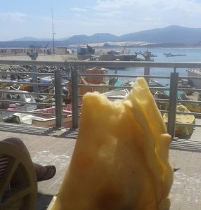 Estas se comen en la costa. Donde yo las he comido son realmente de camarón con queso, no de queso con dos camarones como uno está acostumbrado. Estas parecen más bien un pastelito, porque son hechas de harina de trigo, rellenas con un montón de queso chanco y bastante camarón, además, son como del tamaño de una mano. Sin duda, es lo mejor de ir a la playa.