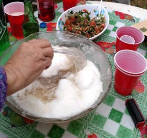 Yo muy poco bebo, pero ésto podría pasar todo el día tomándolo. Es un trago tradicional de las fiestas patrias (18 y 19 de septiembre), pero naaaaa’ guará, es súper rico. Está hecho de vino pipeño con helado de piña y granadina. Es un rasca bobo, yo me tomé dos para las fiestas patrias y quedé bailando como trompo.